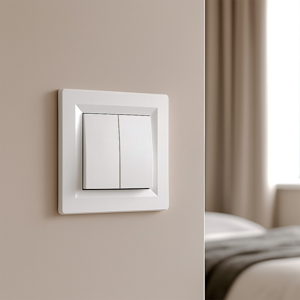 Comandați acum întrerupătorul pentru candelabru Nova cu cadru alb - pentru un control practic și elegant al luminii într-un singur accesoriu de perete!