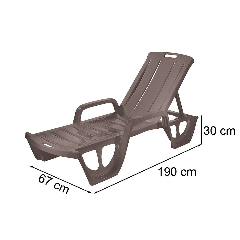 Șezlongul practic Florida este o garanție a unei relaxări confortabile. Structura puternică și stabilă, spătarul reglabil și cotierele late sunt principalele avantaje ale produsului. Este durabil și rezistent la intemperii și la radiațiile UV. Ușor de curățat.