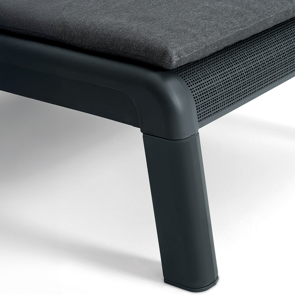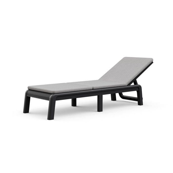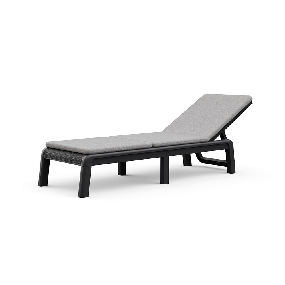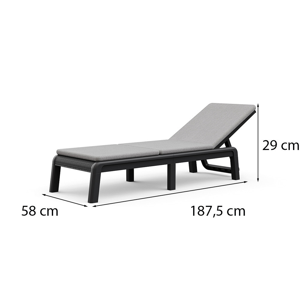 Șezlong Mallorca din plastic, culoare grafit - cu pernă gri deschis