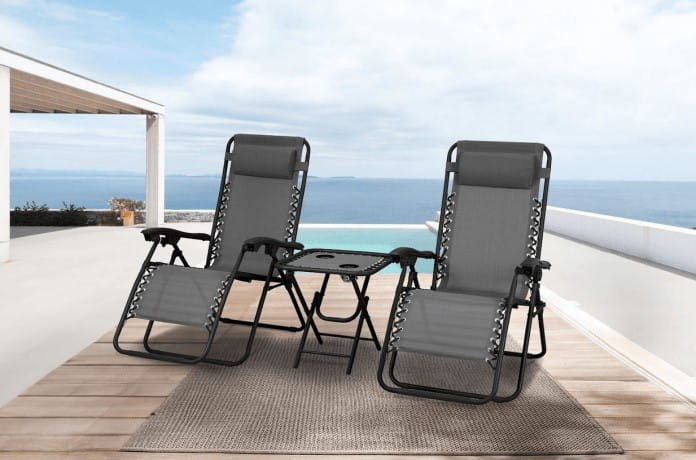 Șezlonguri de grădină Delux gri - Set de 2 șezlonguri cu 1 masă