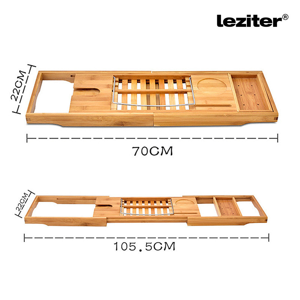 Dimensiunea reglabilă a tăvii pentru cadă (70-105,5 cm) asigură că se potrivește majorității căzilor de baie, ceea ce o face o alegere excelentă atât pentru căzile încorporate, cât și pentru cele independente . Proprietățile naturale de impermeabilitate ale bambusului îl fac durabil, iar designul său perforat previne mucegaiul.