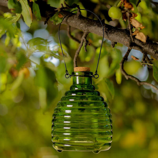 Trapo - Capcană de sticlă pentru viespi. Bucurați-vă de timpul petrecut în aer liber, organizați petreceri și grătare fără ca viespile să vă strice distracția. Capcana reutilizabilă și sigură vă permite să prindeți în mod eficient viespile și alte insecte enervante fără a utiliza substanțe chimice... Păstrați-vă în siguranță întâlnirile în aer liber. Preveniți potențialele înțepături de viespe și alergiile, precum și viespile care rămân blocate în băutura dvs. și zboară în jurul mâncării dvs. Puțin suc sau apă îndulcită și ele cad într-o capcană din care nu pot scăpa... O soluție economică și non-toxică. Utilizați numai ingrediente naturale, cum ar fi fructele, apa și sucurile, pentru a atrage insectele. Capcana este fabricată din sticlă și poate fi utilizată de câte ori este nevoie, în timp ce curățarea este extrem de ușoară... Eficientă împotriva unei varietăți de insecte. Funcționează pe muște de fructe, muște și alte insecte. Trucul este doar să adăugați puțin oțet în apă sau să folosiți un alt tip de fructe pentru a scăpa de dăunătorii zburători... Durată lungă și gamă largă de aplicații. Capcana de sticlă este rezistentă la diferite condiții meteorologice, soarele sau ploaia nu vor afecta eficiența capcanei. Poate fi utilizată în livezi, grădini și ferme prin simpla agățare sau plasare pe o suprafață plană... Vă protejează familia și animalele de companie. Înțepăturile de viespe pot provoca alergii și reacții nedorite, iar dacă capcana este în apropiere, acest lucru poate fi prevenit. Capcana vă permite dumneavoastră, familiei dumneavoastră și animalelor de companie să petreceți mai mult timp în aer liber... Descriere: :Capcană de viespi din sticlă... Material: Sticlă... Dimensiuni: 12 x 16 cm. Culoare: Verde.