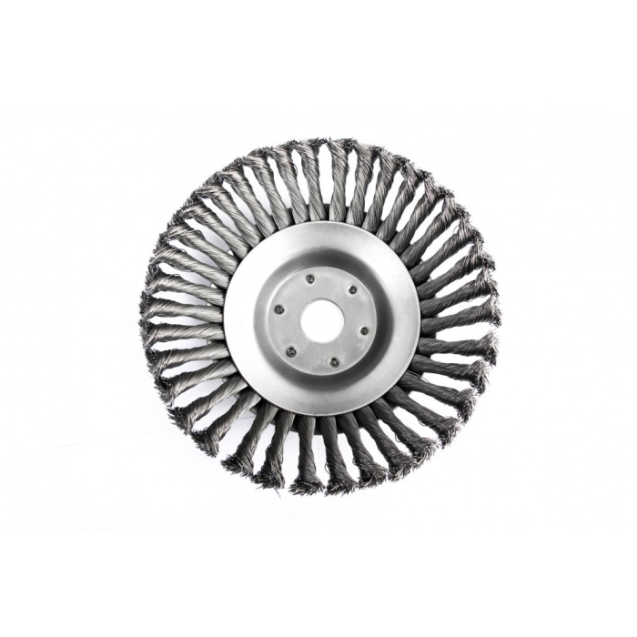 Disc cu perie fabricat din oțel de înaltă calitate, care poate rezista la sarcini centrifuge și viteze foarte mari de până la 10.000/min. Poate fi folosit direct pentru unelte precum mașini de tuns iarba sau mașini de tuns iarba, atât cu combustie, cât și electrice.