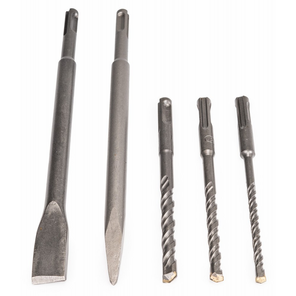 Ciocanul rotopercutor vine cu un set de bază de daltă SDS și burghiu, astfel încât să puteți începe să lucrați cu dispozitivul imediat după primirea mărfii.