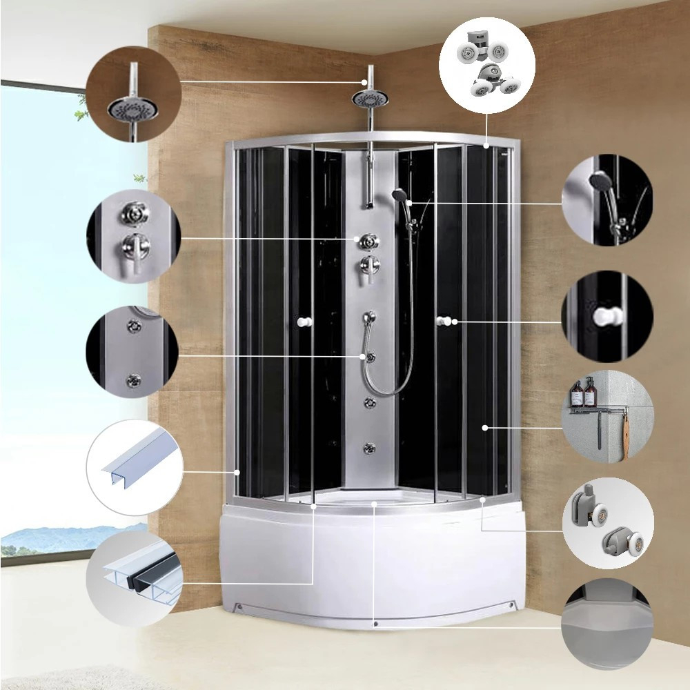 Sunt echipate cu roți duble durabile. Facilitează deschiderea și închiderea cabinei. Greutatea cabinei este mai bine distribuită pe role. | Single de primăvară outsideri Are roți cu eliberare rapidă preinstalate din fabrică. Datorită rolelor cu arc detașabile, curățarea este rapidă și ușoară. | comutator/mixer de funcții robinet Piperul intern este echipat cu acest raft . pentru un confort sporit |