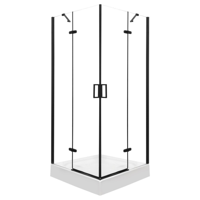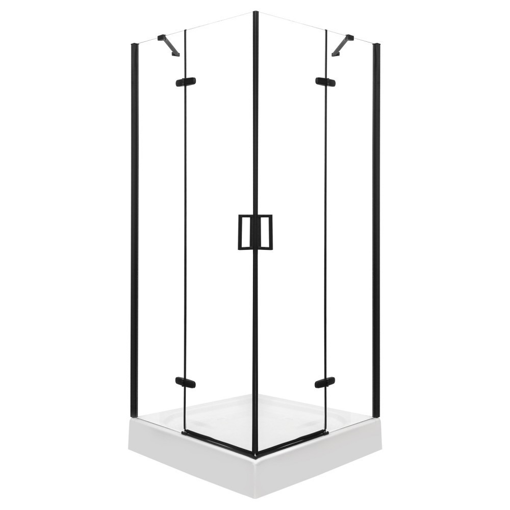 Cabină de duș pătrată Flow Black cu ușă batantă 80x80 cm