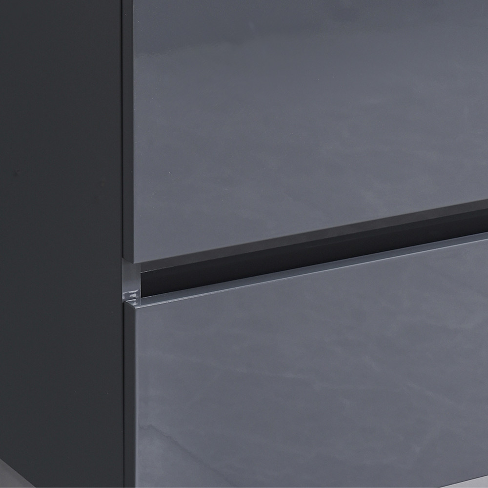 Pe lângă funcționalitate, desigur, aspectul mobilierului a acordat, de asemenea, o mare atenție. Gri antracit lucios culoarea sa și curat și modern Datorită liniilor sale, creează armonie în atmosfera tuturor băilor.