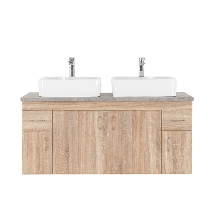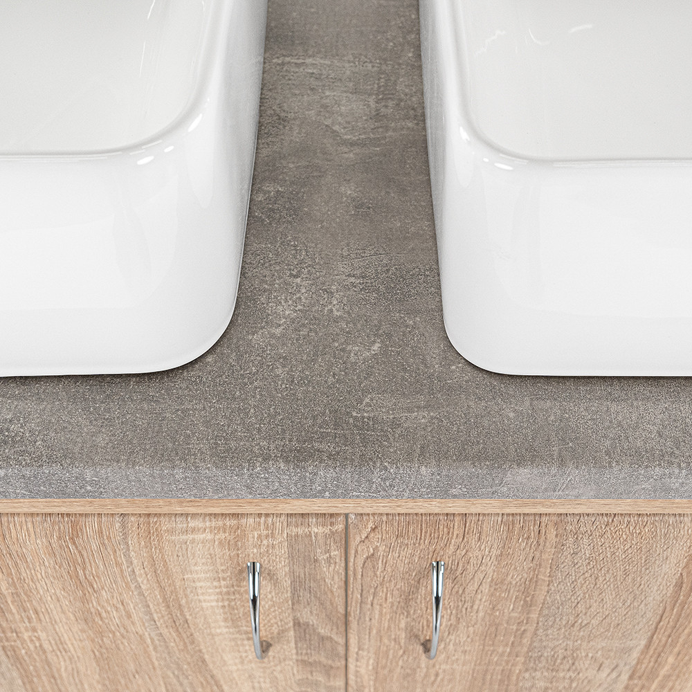 Mobilierul Bianco 130 se caracterizează prin stil minimalist și caracter practic. Suprafața cu efect natural oferă un aspect atemporal, în timp ce designul cu lățimea de 128 cm oferă suficient spațiu pentru două lavoare.