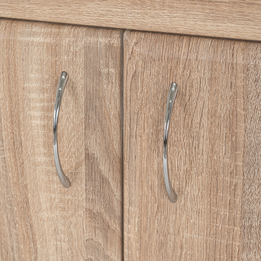 Dulapul are un design cu mai multe uși și două sertare practice, care oferă suficient spațiu pentru depozitarea prosoapelor, cosmeticelor sau produselor de curățenie. Dulapul este echipat cu mânere elegante, cromate, pentru o utilizare ușoară.