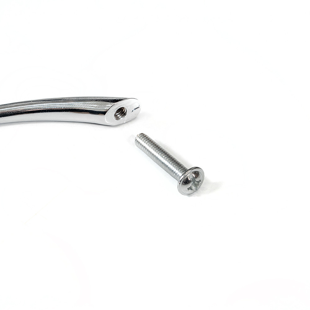 Mânerul pentru mobilier Bianca, cu forma sa curbată modernă și finisajul cromat strălucitor, este un accesoriu elegant pentru orice piesă de mobilier. Fabricat din metal durabil pentru o durată lungă de viață și utilizare confortabilă.