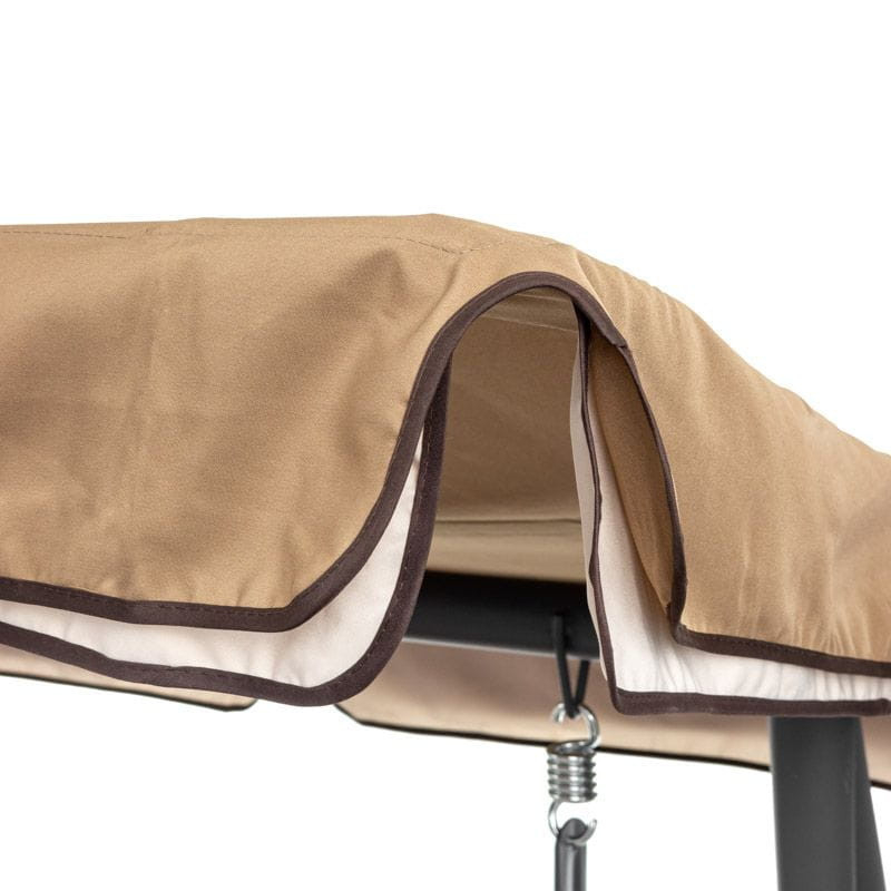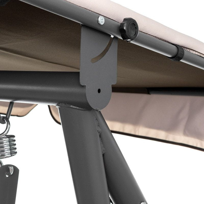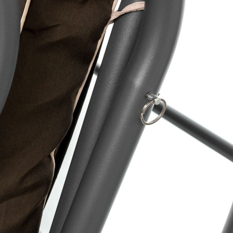 Spătarul balansoarului de grădină poate fi rabatat în poziție culcat , permițându-vă să vă relaxați în orice poziție. Avantajul este acoperișul reglabil , care protejează împotriva luminii puternice a soarelui.