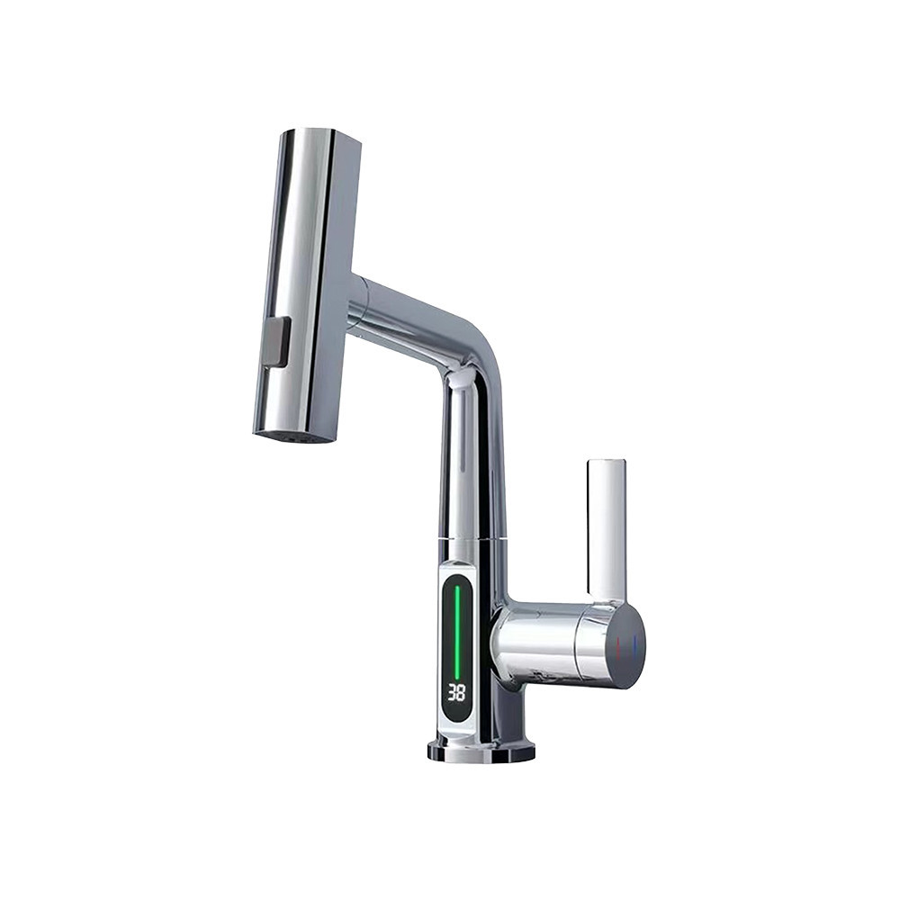Există un afișaj digital al temperaturii pe robinet? Da, robinetul are un afișaj digital încorporat pentru temperatură, care arată cu precizie temperatura apei folosind diferite culori: albastru (0-30°C), verde (30-40°C) și roșu (40-49°C).