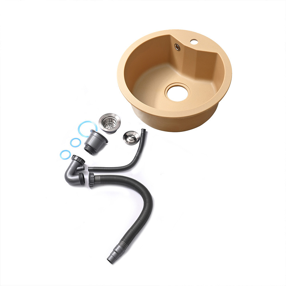 Leziter Chiuvetă rotundă Dorin din granit cu o singură cuvă și sifon bej