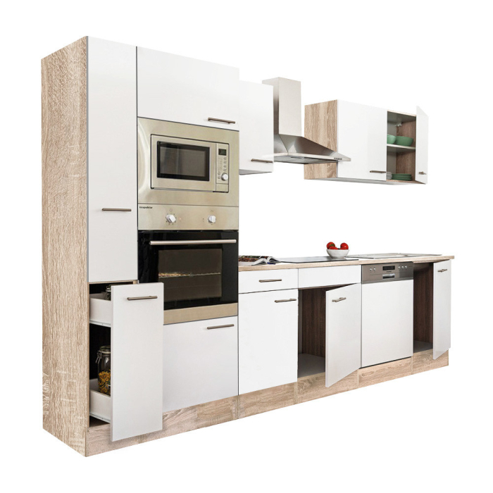 Unitate de bucătărie Yorki 310, corp din stejar Sonoma, cu față alb satinat. Creatorul bucătăriei perfecte!