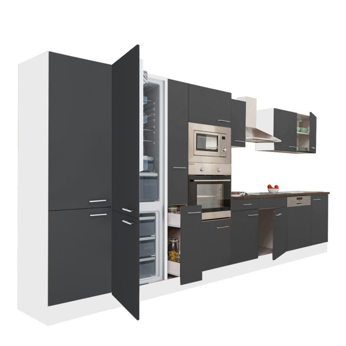 Leziter Mobilă de bucătărie Yorki 420, corp alb, față antracit satinat, frigider cu congelator jos