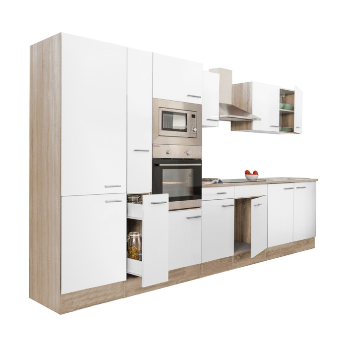 Bloc de bucătărie Yorki 360, corp din stejar Sonoma, cu față alb satinat. Creatorul bucătăriei perfecte!