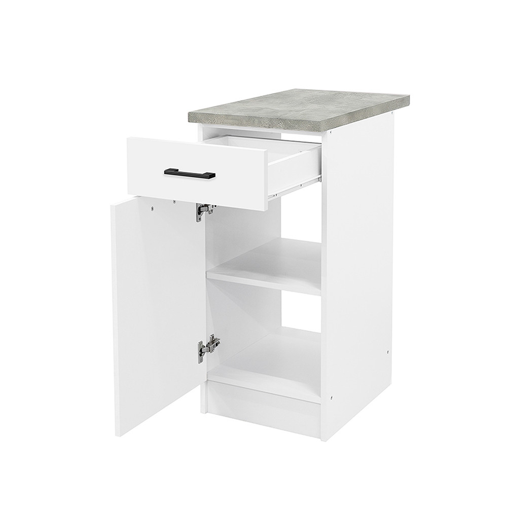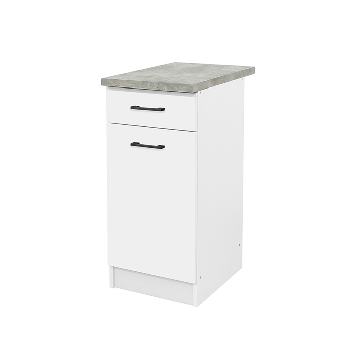Dulapul de bază Praktik 40 cu 1 ușă și 1 sertar face parte din familia de mobilier de bucătărie Praktik, care se potrivește perfect cu Praktik 180. Dimensiunile sale compacte și designul elegant îl fac ideal pentru bucătării mai mici, apartamente sau chiar ca unitate de bază independentă.