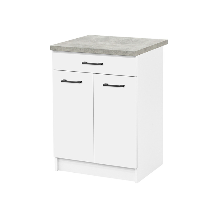Dulapul de bază Praktik 60 cu 2 uși și 1 sertar face parte din familia de mobilier de bucătărie Praktik, care se potrivește perfect cu Praktik 180. Dimensiunile sale compacte și designul elegant îl fac o alegere ideală pentru bucătăriile mici, apartamente sau chiar ca unitate de bază independentă.