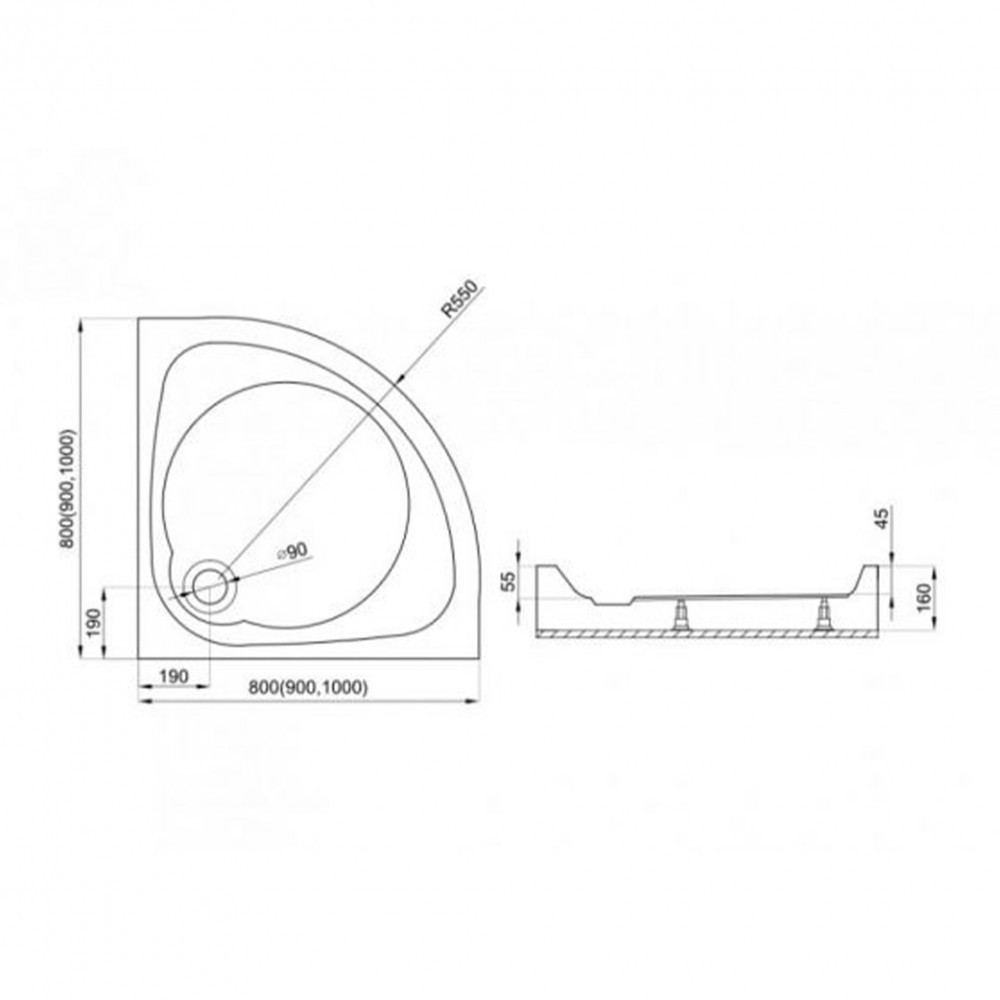 Compatibil cu toate cabinele Kerra cu o rază de 55 cm și dimensiuni de 80x80 cm.