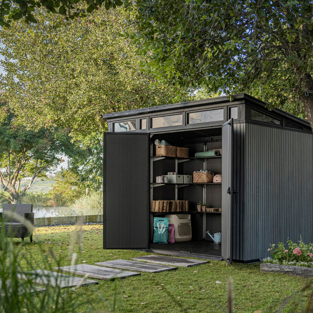 - Design modern - Acoperișul înclinat curat și ușile negre elegante se vor potrivi oricărei grădini.