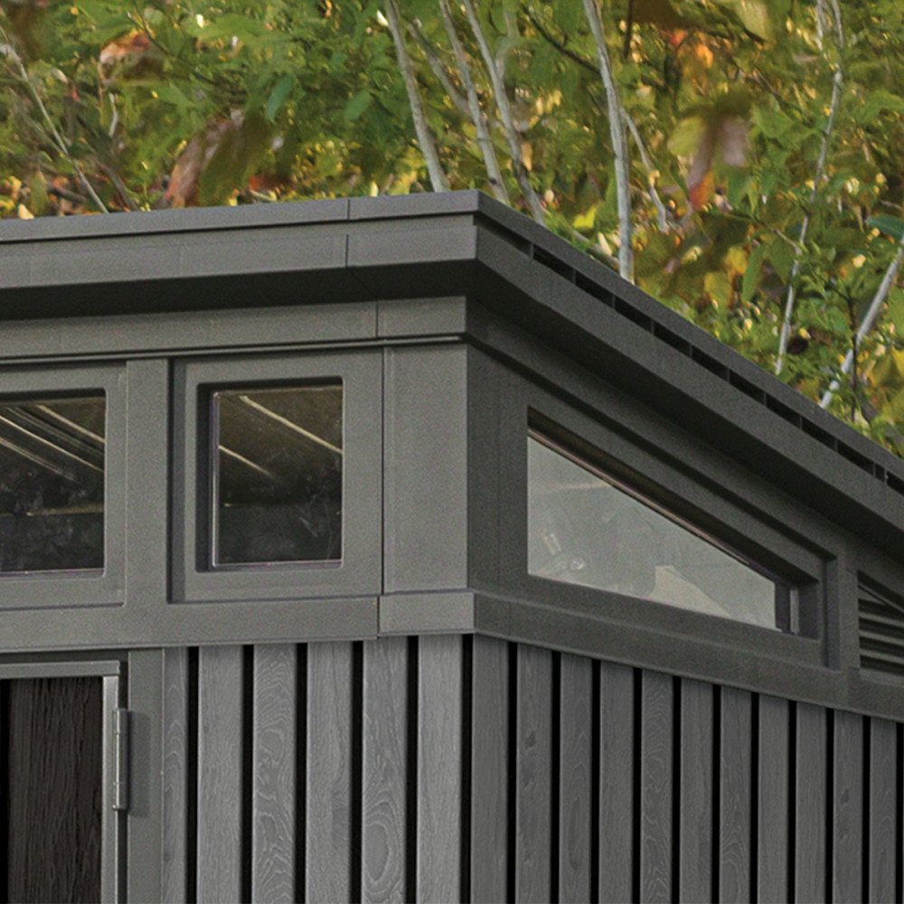- Pentru cei care caută depozitare de grădină modernă și elegantă - Finisajul gri venețian cu efect de lemn va adăuga un aspect estetic oricărei grădini.