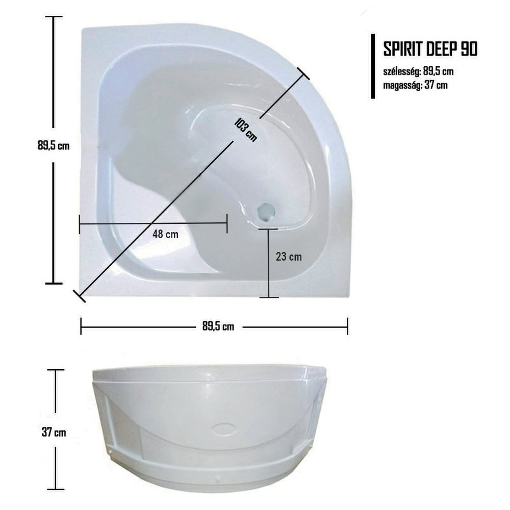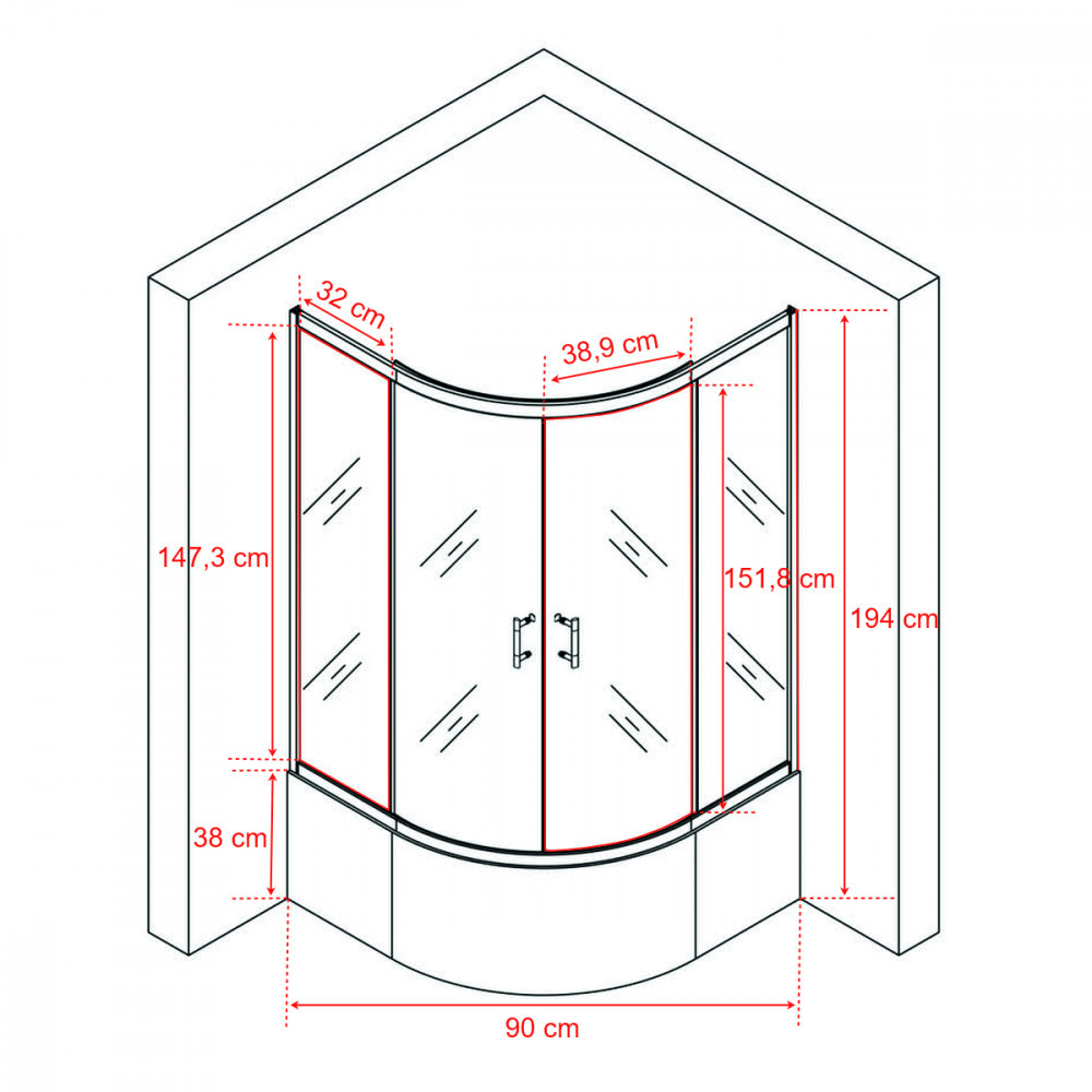 Cabină de duș curbată Spirit Deep 90x90 cm cu cădiță de duș
