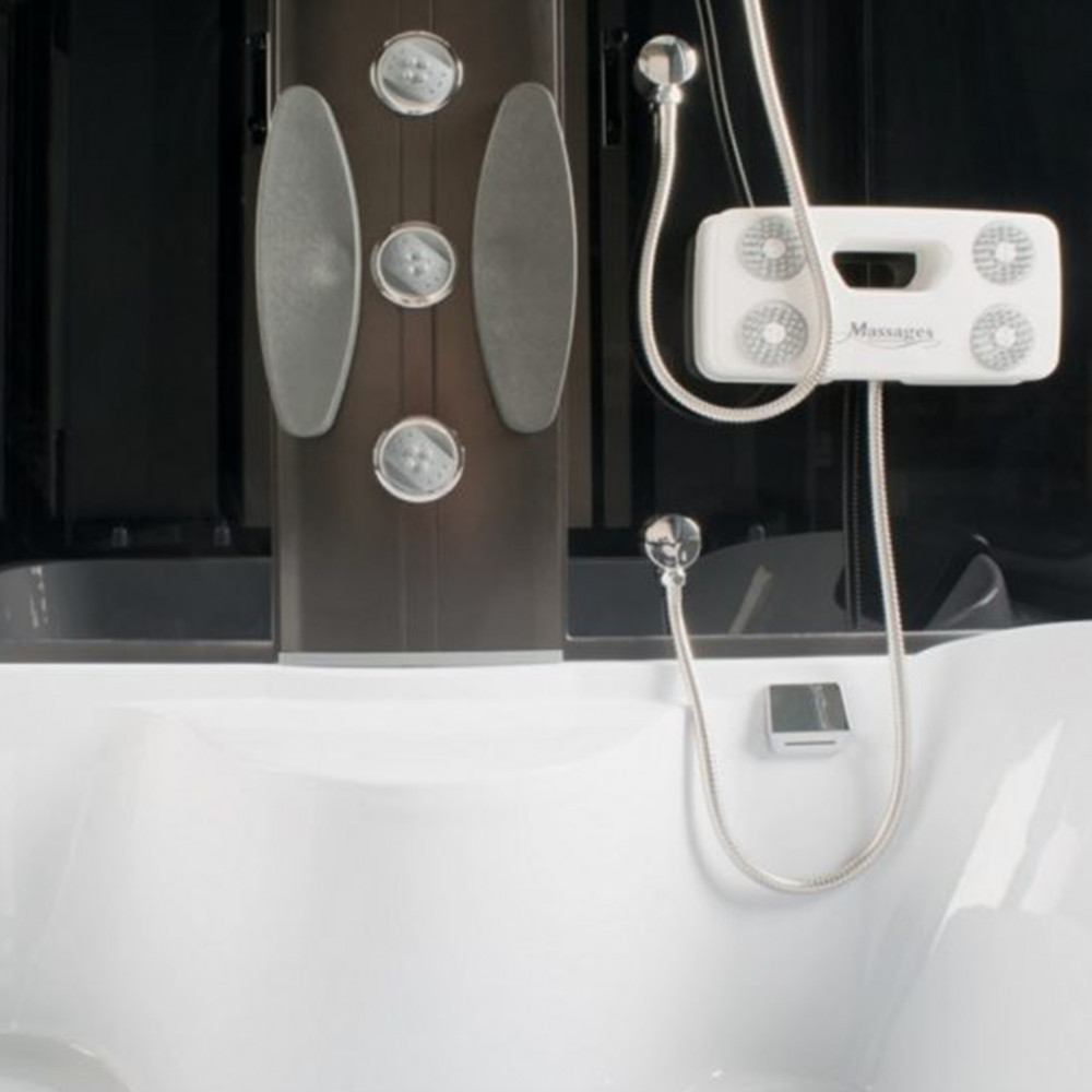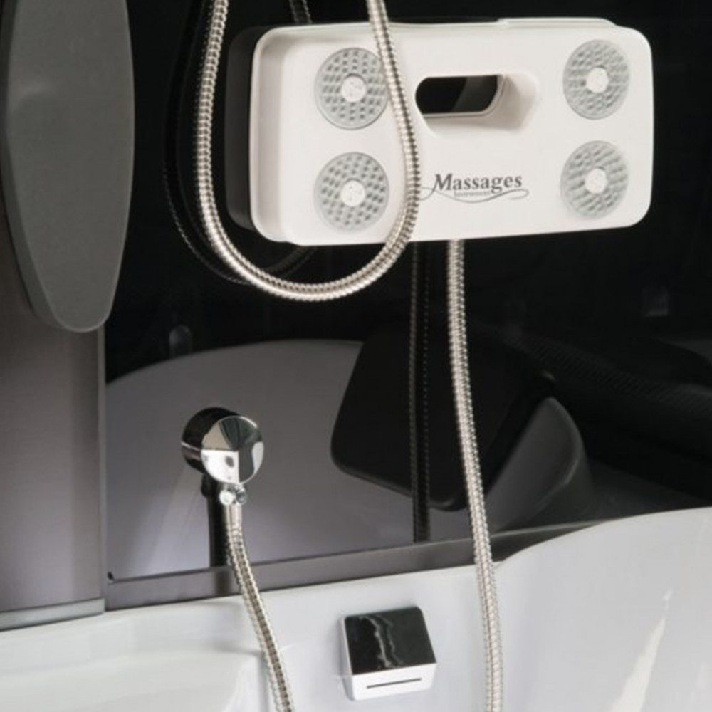 Cei doi pereți din spate ai produsului pot fi schimbați dacă se dorește, astfel încât setul de duș și aparatul de masaj pentru picioare pot fi plasate pe partea dreaptă sau stângă.