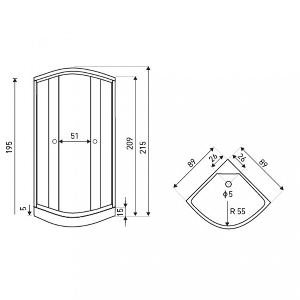 - Dimensiuni cădiță de duș: 89 x 89 x 15 cm