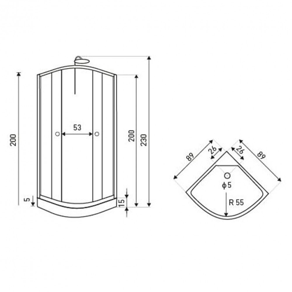 • Dimensiuni cădiță de duș: 89 x 89 x 15 cm