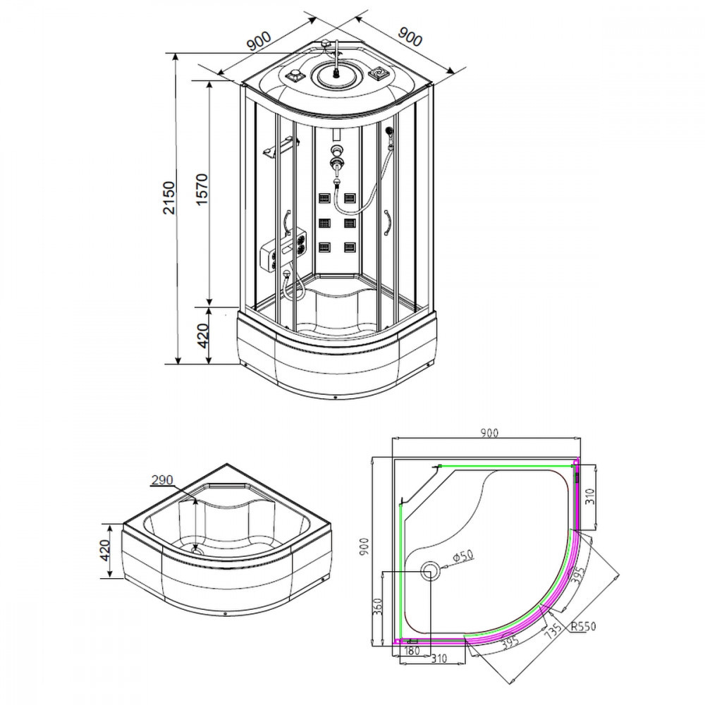 | Dimensiune | 90x90x215cm | Tavă astăzi. | 42 cm |