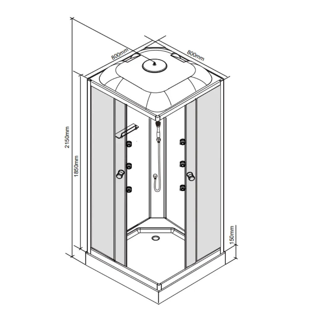 Leziter Cabină de duș pătrată cu hidromasaj Valerie 80x80 cm
