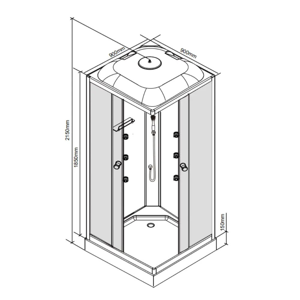 Leziter Cabină de duș pătrată cu hidromasaj Valerie 90x90 cm