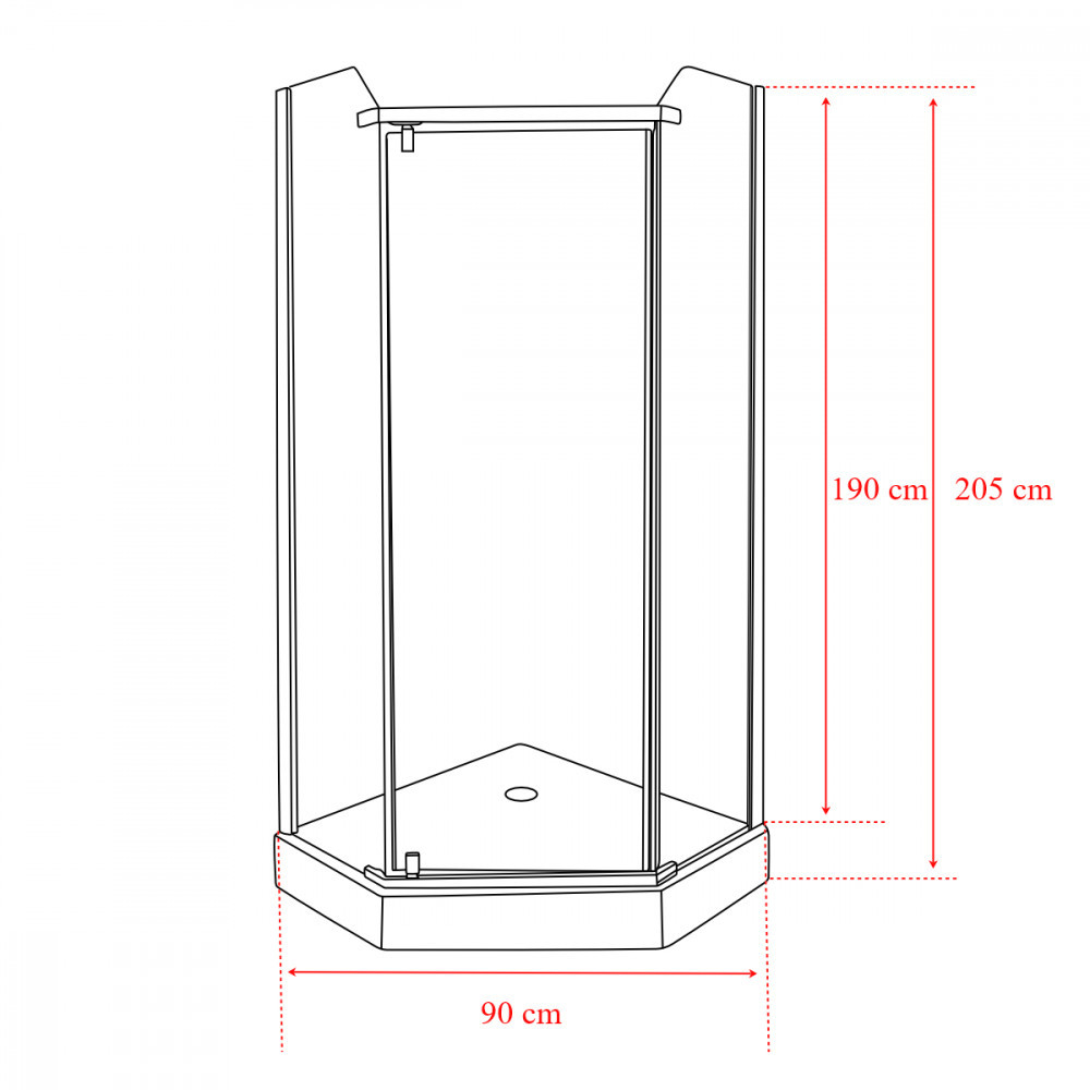 Cabina de duș este echipată cu sticlă securizată transparentă de 6 mm . Disponibil într-un design pătrat. Cabina de duș are dimensiunile de 90x90x190 cm fără cădiță de duș și 90x90x203 cm cu cădiță de duș. Cabina poate fi instalată cu o cădiță de duș sau așezată direct pe podea (cădița poate fi achiziționată separat). Cabina poate fi instalată atât în versiunea pentru dreapta, cât și pentru stânga.