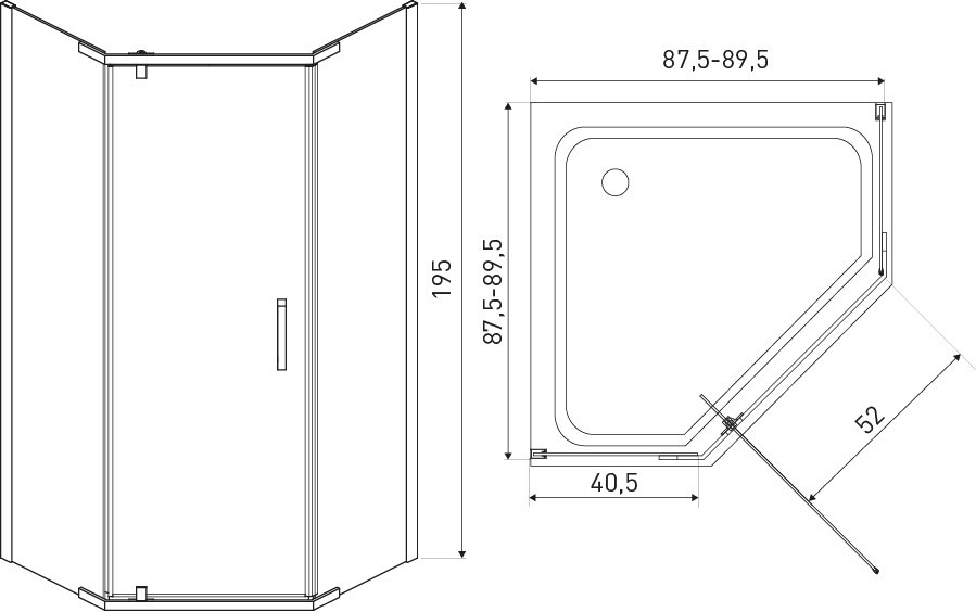 Cabină de duș pătrată Kora 90 Gold cu ușă batantă