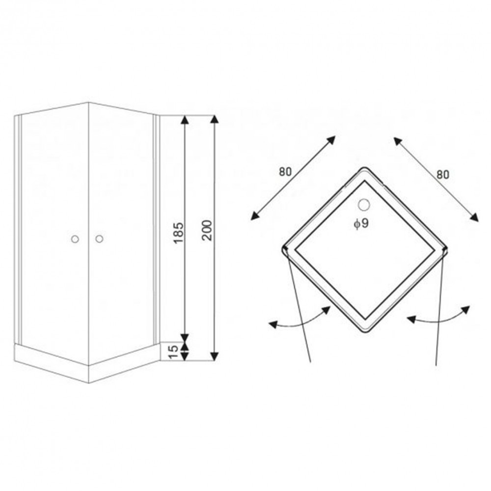 Cabina de duș este echipată cu sticlă securizată securizată de 5 mm . Cabina de duș este disponibilă într-un design pătrat. Este echipată cu o ușă mecanică cu două canate, cu ridicare rapidă. Cabina are dimensiunile de 80 x 80 x 185 cm (cu 200 de tăvi). Dimensiuni cădiță de duș (opțional): 80 x 80 x 15 cm / 80 x 80 x 15 cm (nu este inclusă).