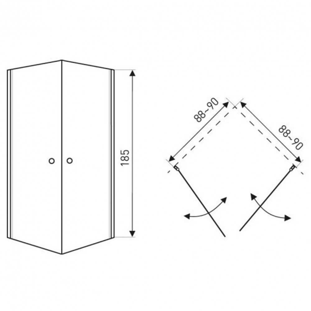 Cabina de duș este echipată cu sticlă securizată securizată de 5 mm . Cabina de duș este disponibilă într-un design pătrat. Este echipată cu o ușă mecanică cu două canate, cu ridicare rapidă. Cabina are dimensiunile de 90 x 90 x 185 cm (cu 200 de tăvi). Dimensiuni cădiță de duș (opțional): 90 x 90 x 15 cm / 90 x 90 x 15 cm (nu este inclusă).