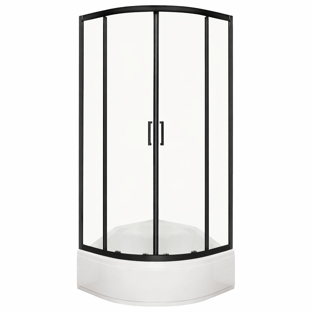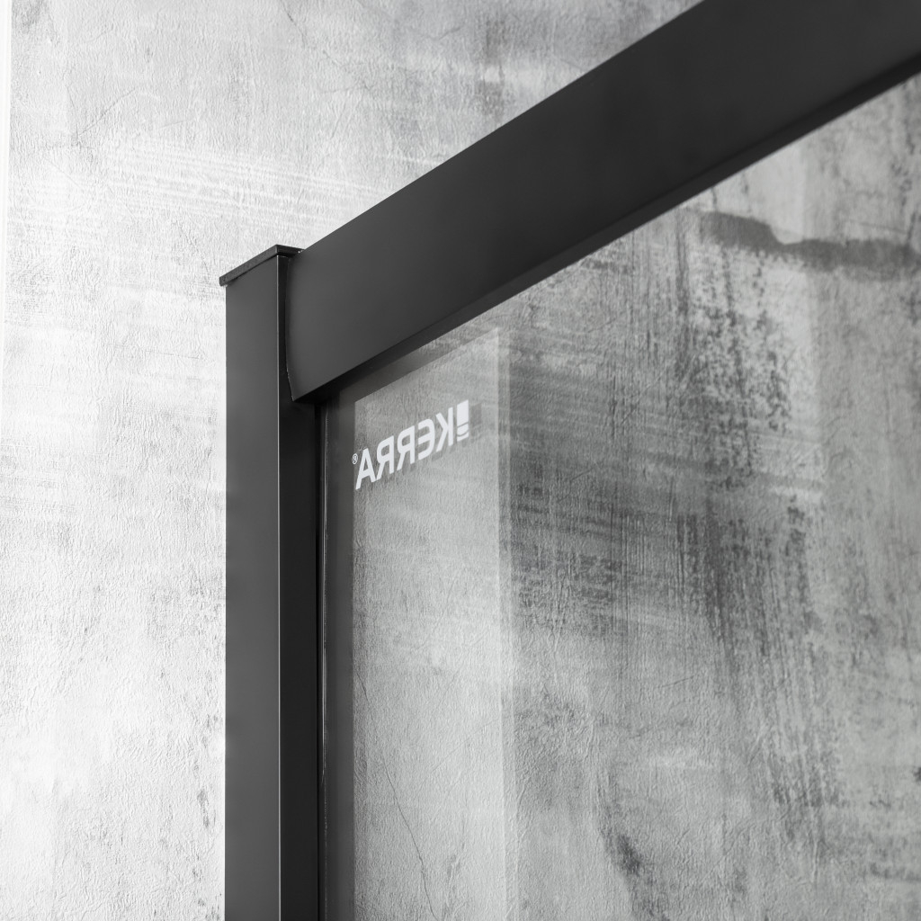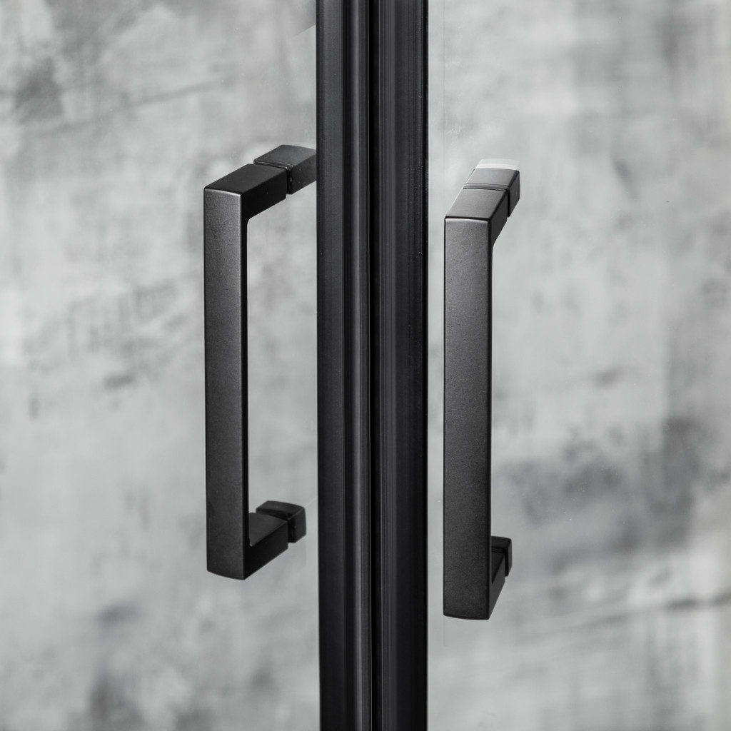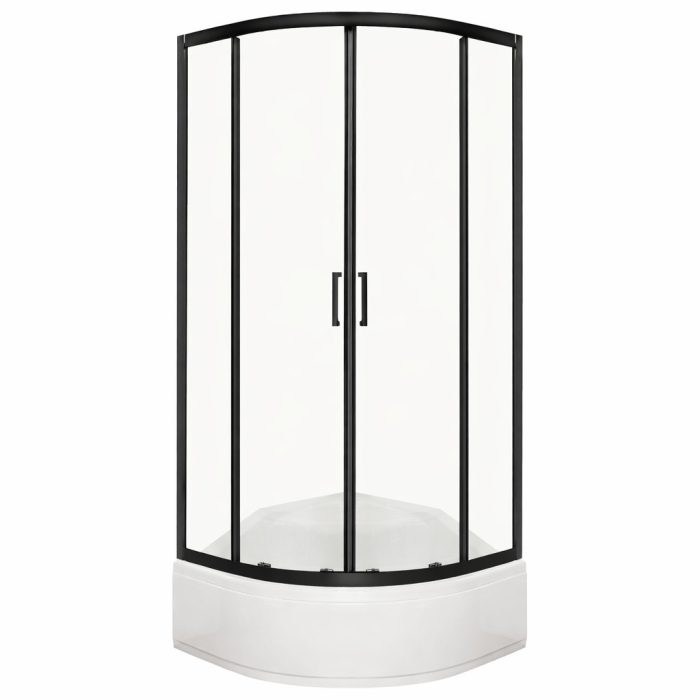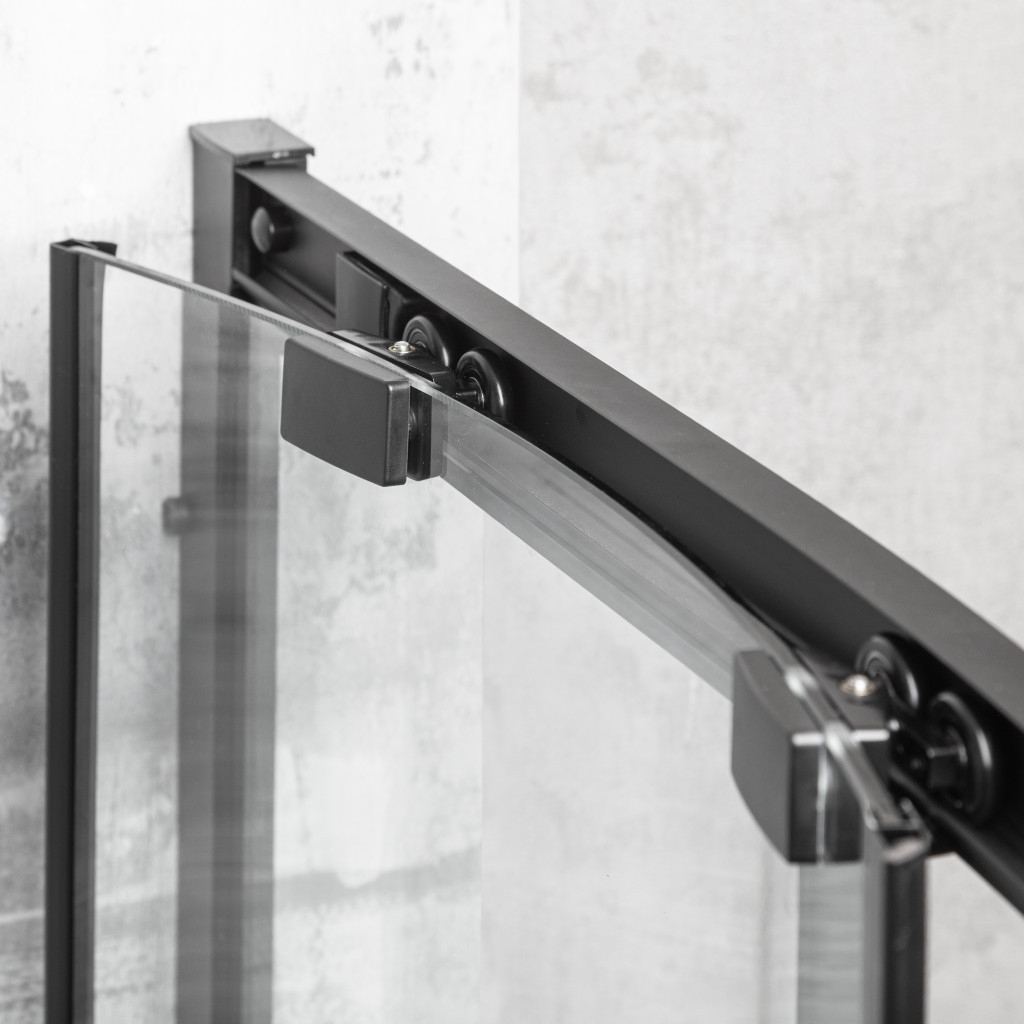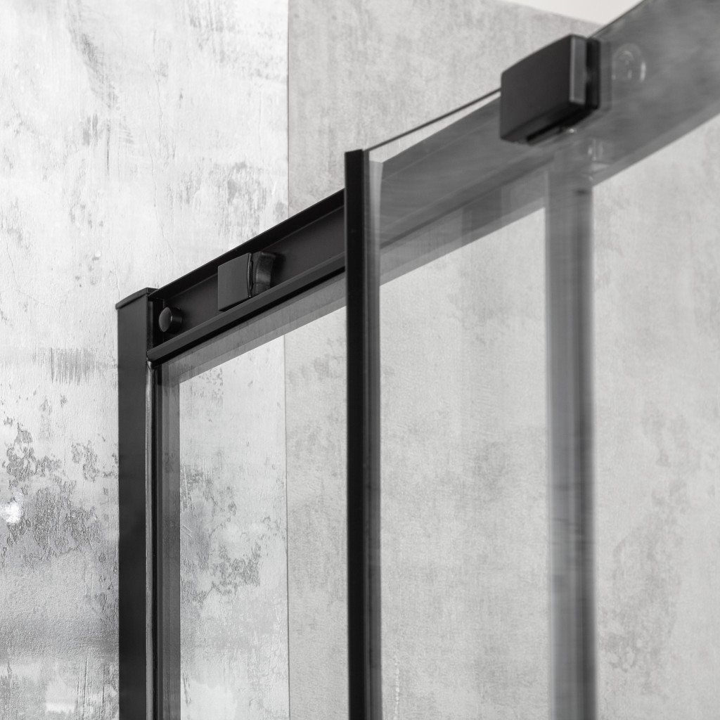 Carcasa este echipată cu uși glisante care asigură deschiderea și închiderea fără probleme. Sticla transparentă, temperată, de 5 mm asigură siguranță și durabilitate, în timp ce profilele din aluminiu negru accentuează caracterul modern al setului.