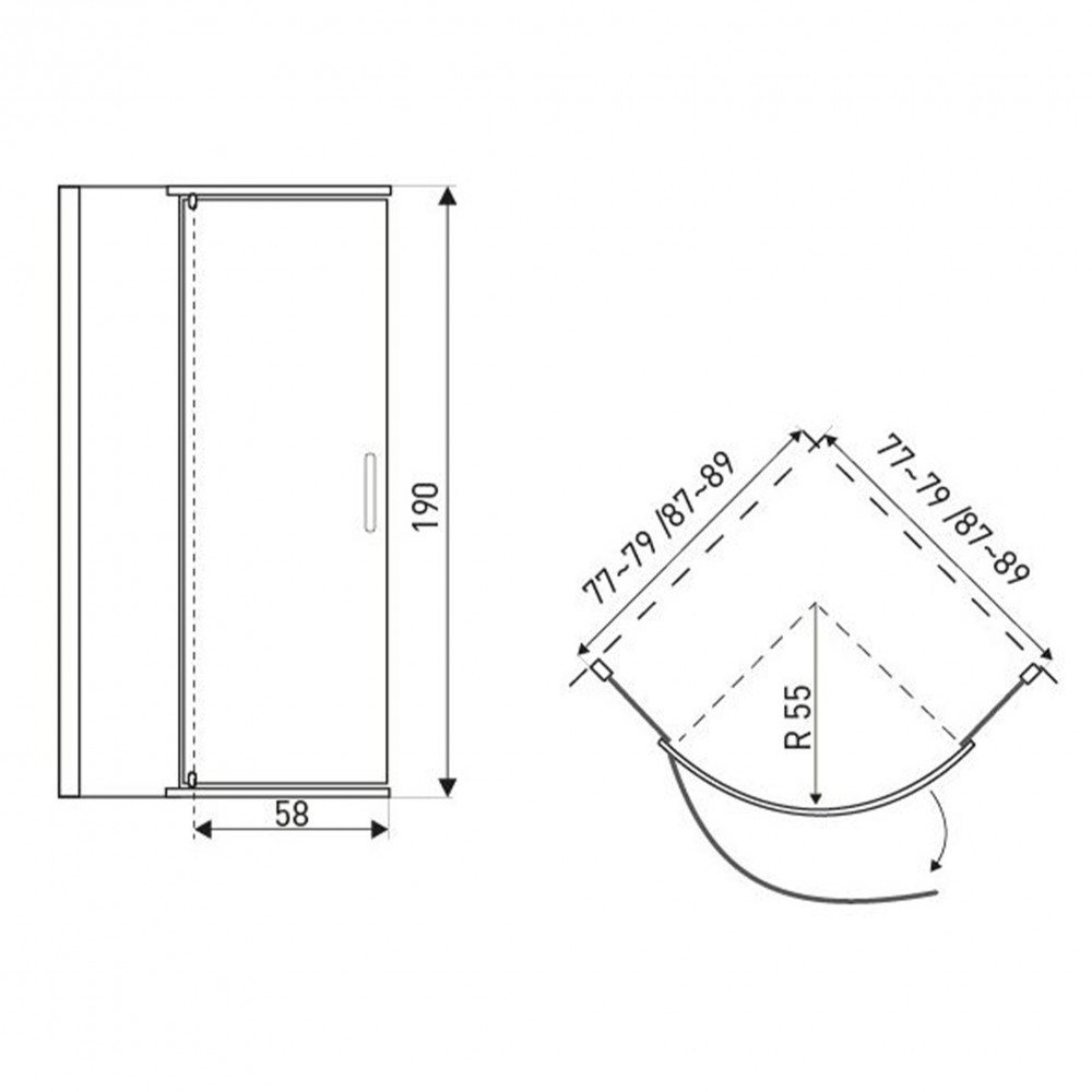 Cabina de duș este echipată cu sticlă securizată de 6 mm . Dimensiunile sale sunt 79x79x190 cm. Opțiune universală de instalare a ușii pe dreapta sau stânga. Sticla cabinei de duș este prevăzută cu un strat protector hidrofug. Are uși care se deschid cu un singur canat.