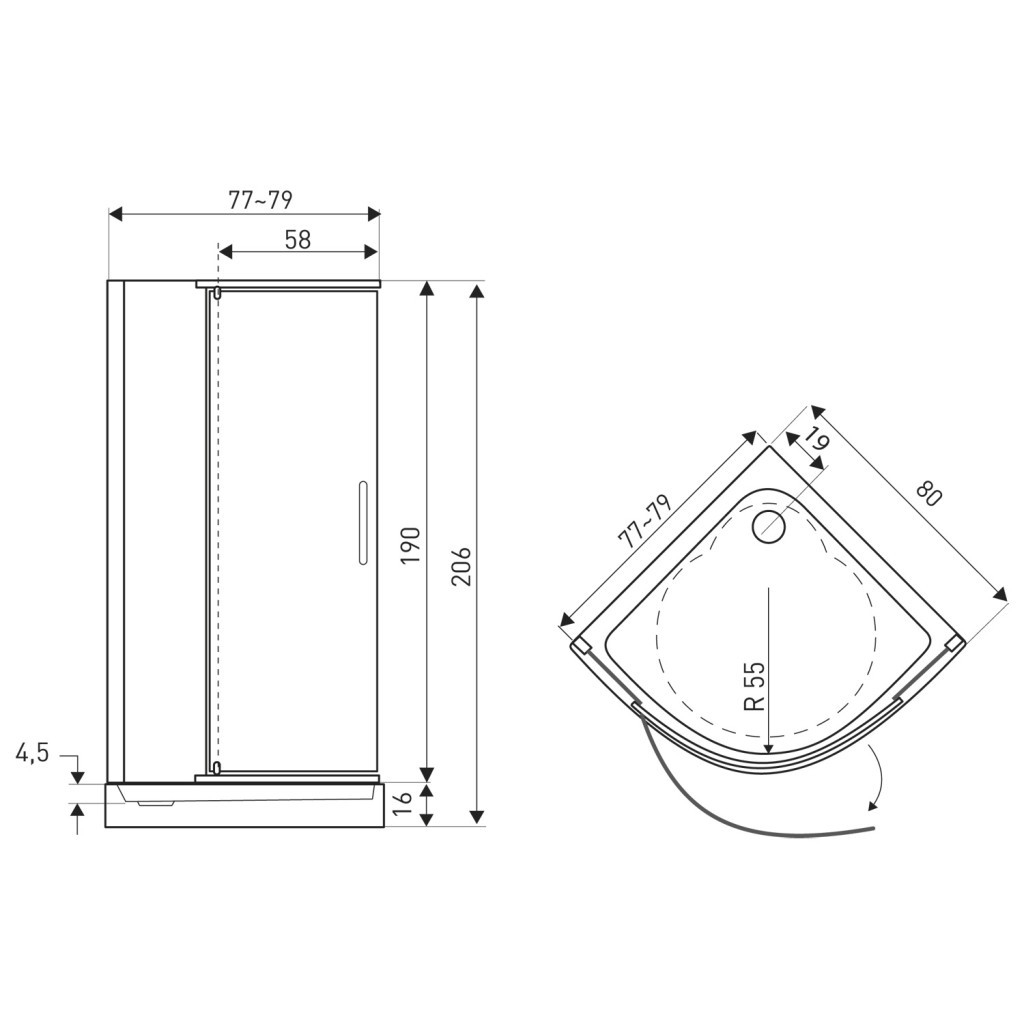- 80 × 80 × 190 cm - sticlă călită de 5 mm - profil din aluminiu negru mat