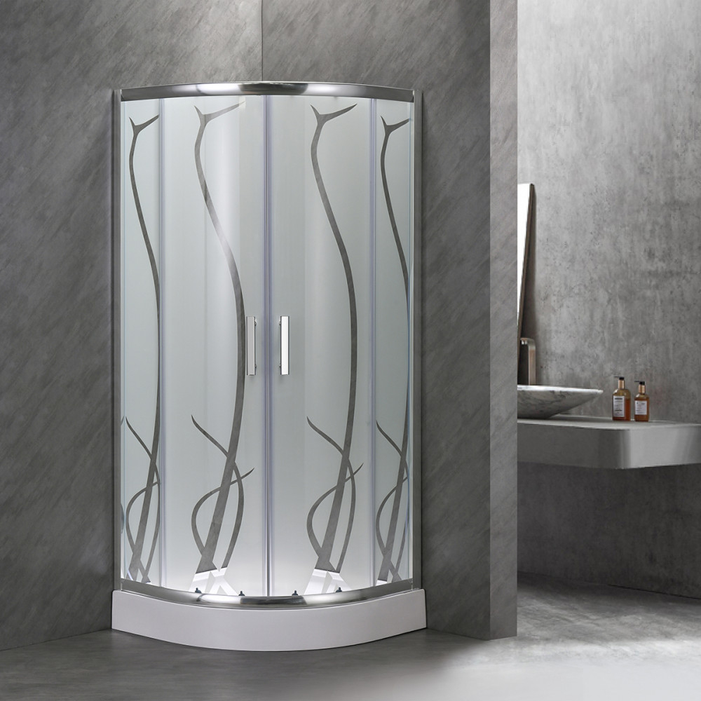 Cabină de duș curbată Spirit Bamboo 90x90 cm cu cădiță de duș