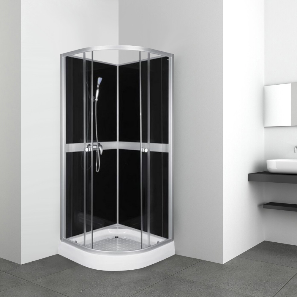 Are pereți din sticlă securizată de 4 mm . Profilele cabinei de duș sunt din aluminiu cromat .