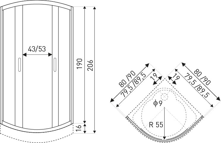 • Dimensiuni - 90x90x190 (fără cădiță de duș) 90x90x206 cm (cu cădiță de duș)