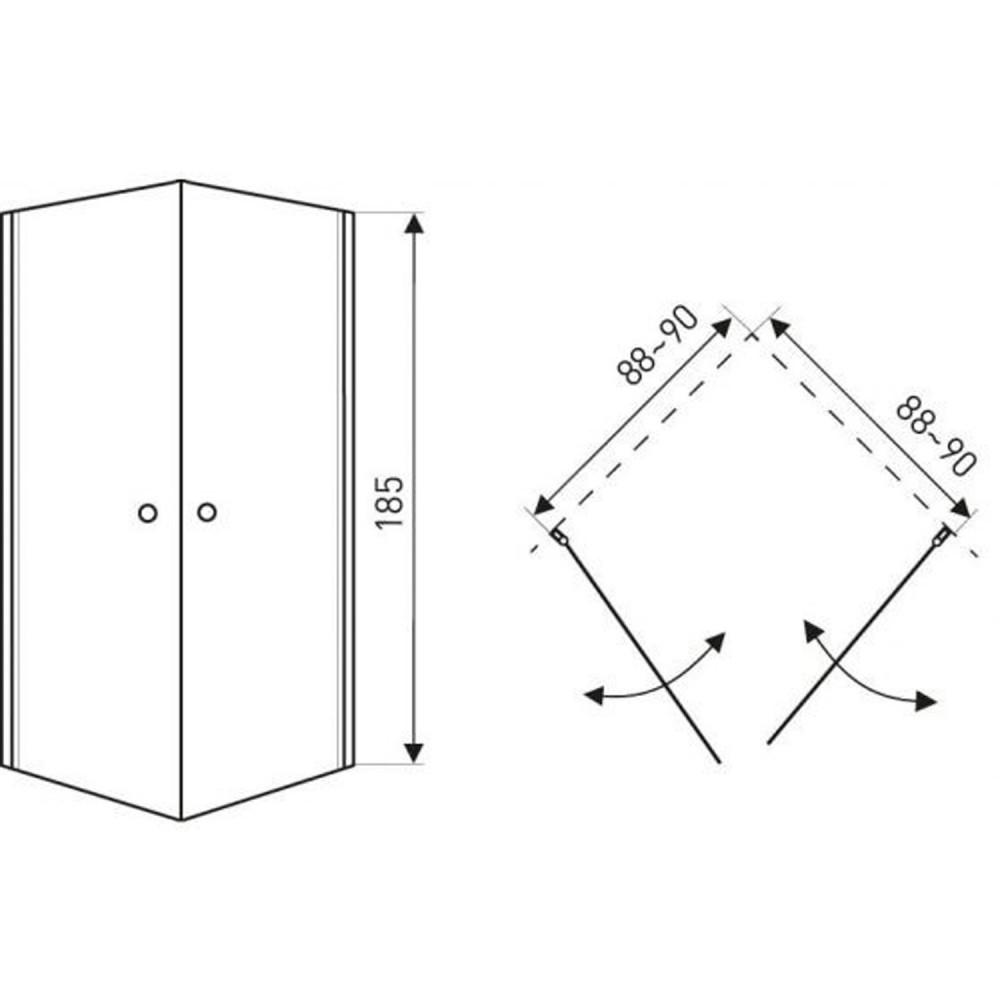 Cabina de duș este echipată cu sticlă securizată securizată de 5 mm . Cabina de duș este disponibilă într-un design pătrat. Este echipată cu o ușă mecanică cu două canate, cu ridicare rapidă. Cabina are dimensiunile de 90 x 90 x 185 cm (cu 200 de tăvi). Dimensiuni cădiță de duș (opțional): 90 x 90 x 15 cm / 80 x 80 x 15 cm (nu este inclusă).