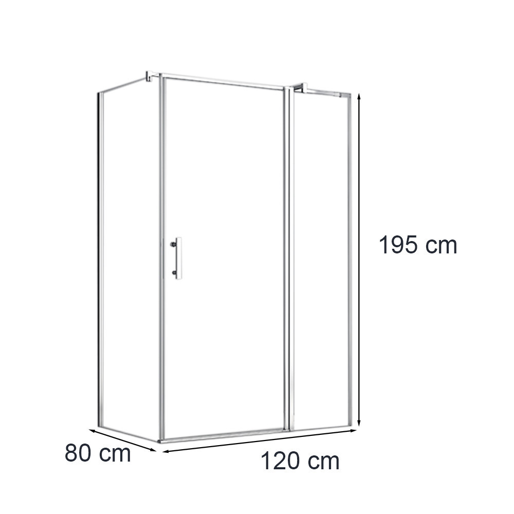 Cabină de duș asimetrică 80x120 cm cu uși care se deschid (fără tavă de duș)