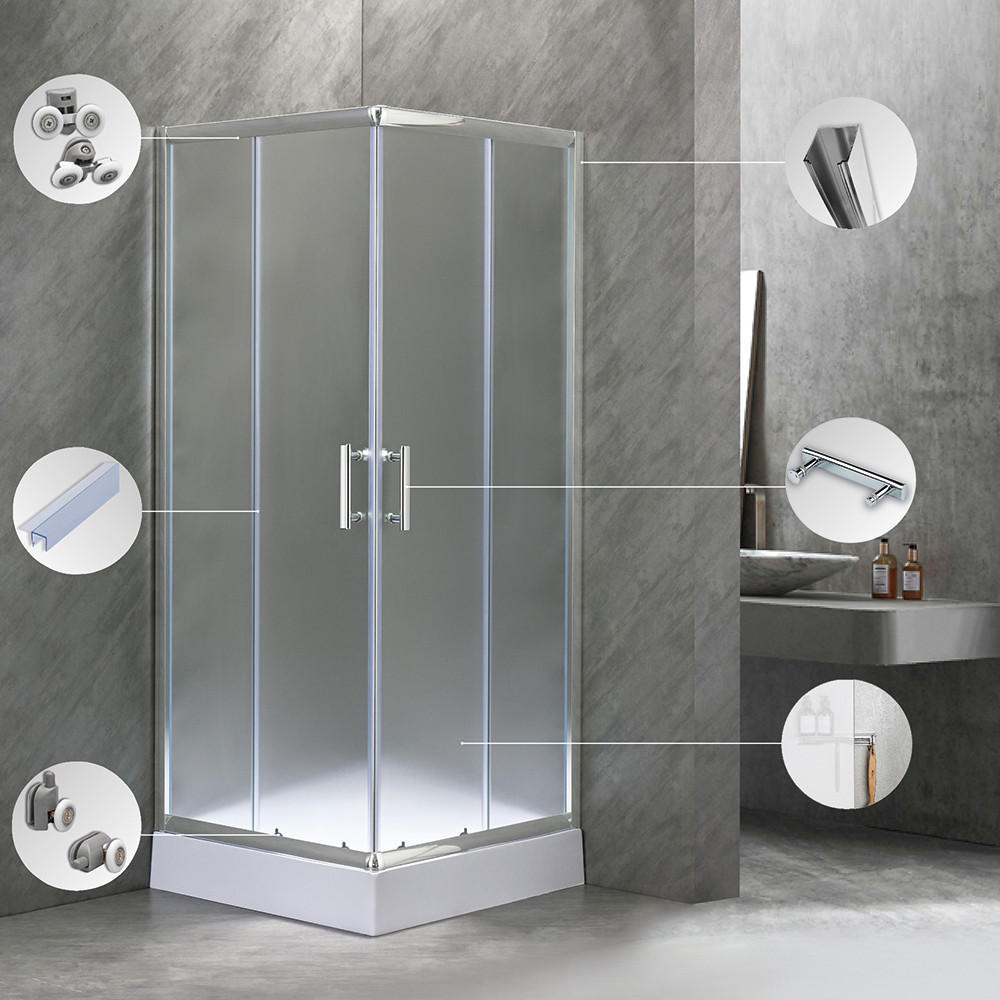 Are profile impermeabile din plastic pentru a menține apa în interiorul cabinei. Cu ajutorul profilelor de perete reglabile, puteți corecta o abatere de până la 15 mm dacă peretele nu este complet vertical . Dacă îl comandați fără cădiță, vă puteți aștepta la o înălțime de 180 cm, iar dacă îl comandați cu o cădiță de duș acrilică ranforsată într-un set, vă puteți aștepta la o înălțime de 194 cm.