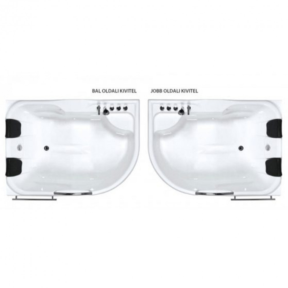 E-Plus: corp de cadă din acrilic sanitar, cu grosimea de 5 mm, proiectat ergonomic. Ranforsare cu spumă poliuretanică pe corpul căzii. Structură metalică de susținere, placă pentru cadă. Preplin automat, sifon cu supapă de golire. Balustradă cromată, versiune dreapta-stânga. Sistem de masaj pentru spate și picioare V-concept™ cu 2x6 jeturi. Sistem de hidromasaj cu 4 jeturi MIDI. Cadă cu hidromasaj cu 13 jeturi. Iluminare ambientală pentru terapia cu culoare subacvatică. Sistem de uscare, robinet retro instalat