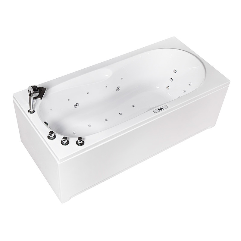 Malawi Hydro are o armătură din rășină sintetică și fibră de sticlă pe corpul căzii. Corp de cadă din acrilic cu grosimea de 3,2 mm. Cu ranforsare cu placă de 20 mm grosime în partea de jos. Structură pentru picioare cu cadă, panou cadă, 1 panou lateral. Preplin automat, sifon cu supapă de golire. CADOU: set de fixare pentru marginea căzii de baie. Sistem de masaj E-Drive™: 6 Micro jeturi V-Concept™ pentru masajul spatelui, 4 Midi jeturi pentru masajul lateral, 2 Midi jeturi pentru masajul picioarelor, sistem cu hidromasaj cu 10 jeturi. Afișaj LCD, control digital cu buton tactil, iluminare prin cromoterapie, sistem de uscare a țevilor, dezinfecție a apei cu ozon, sistem de menținere a temperaturii apei, radio FM, blocare de siguranță și iluminare exclusivă prin cromoterapie: cele 11 LED-uri de pe lateralul căzii asigură confortul și luxul căzii.
