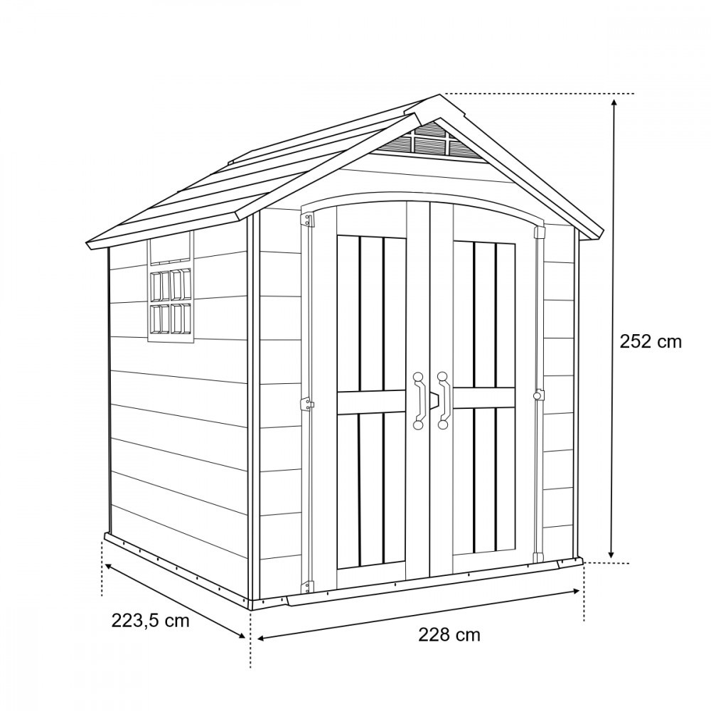 Șopronul practic de grădină Keter Premier 757 poate depozita unelte de grădină și atelier, cum ar fi diverse mașini de tuns iarba, ferăstraie, burghie, grătare și scări. Această casă nu va fi doar un loc practic pentru a depozita toate lucrurile esențiale, ci și o completare elegantă a grădinii tale. Casa dispune, de asemenea, de uși duble largi, ferestre victoriene și luminatoare care aduc lumina naturală în casă și asigură o mai bună circulație a aerului. Acoperișul solid și structura din oțel armat îmbunătățesc stabilitatea casei și îi maximizează durata de viață. Datorită procesării sale, această căsuță de grădină poate rezista la utilizare intensă, vandalism, intemperii extreme sau radiații UV. Podeaua ridicată protejează interiorul casei de frunze, apă și zăpadă, reducând astfel riscul de deteriorare a conținutului acesteia. Vei aprecia sistemul său de închidere din oțel inoxidabil, care este pregătit pentru a fi echipat cu o încuietoare, astfel încât bunurile tale vor fi în deplină siguranță.
