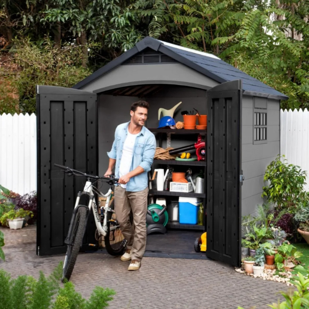 Ai unelte de grădinărit prin casă sau în grădină, dar nu mai ai spațiu în garaj? Șopronul practic de grădină Keter Premier 757 nu numai că poate depozita unelte și alte accesorii de grădină, dar este și suficient de spațios pentru a depozita o mașină de tuns iarba, un grătar, o scară, o trambulină, un set complet de mobilier de grădină și alte lucruri necesare.