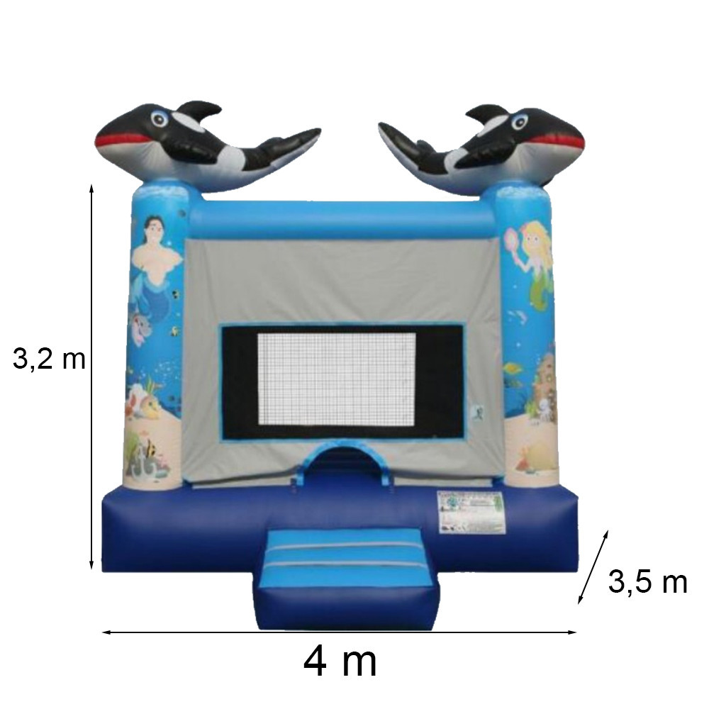 Distracția este garantată cu castelul gonflabil Delfin! Acest castel gonflabil de înaltă calitate, de 4x3,5x3,2 metri, este dotat cu o suflantă de 1500 W care respectă standardele UE, astfel încât îl puteți umfla în câteva secunde, astfel încât copiii dvs. să se poată juca în el cât mai curând posibil.